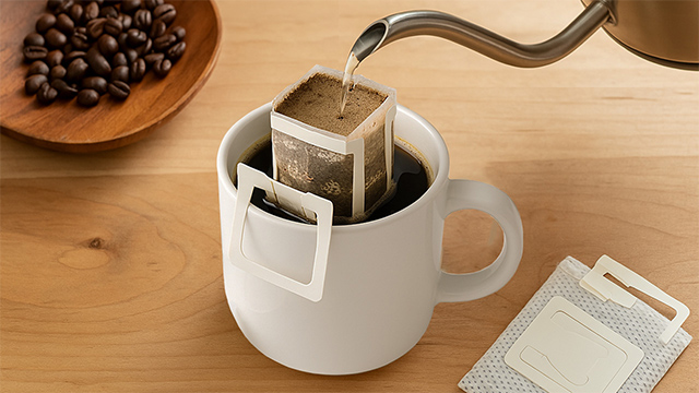 4.將掛杯緣之濾袋掛耳向上拉起,幾可享用